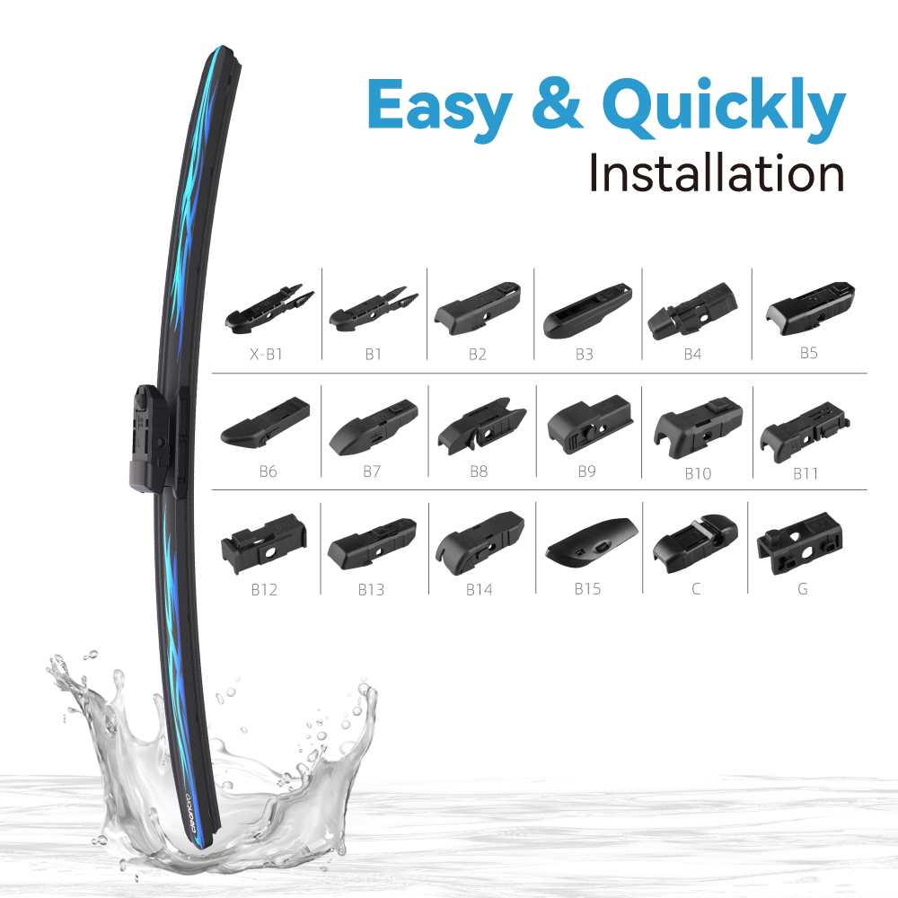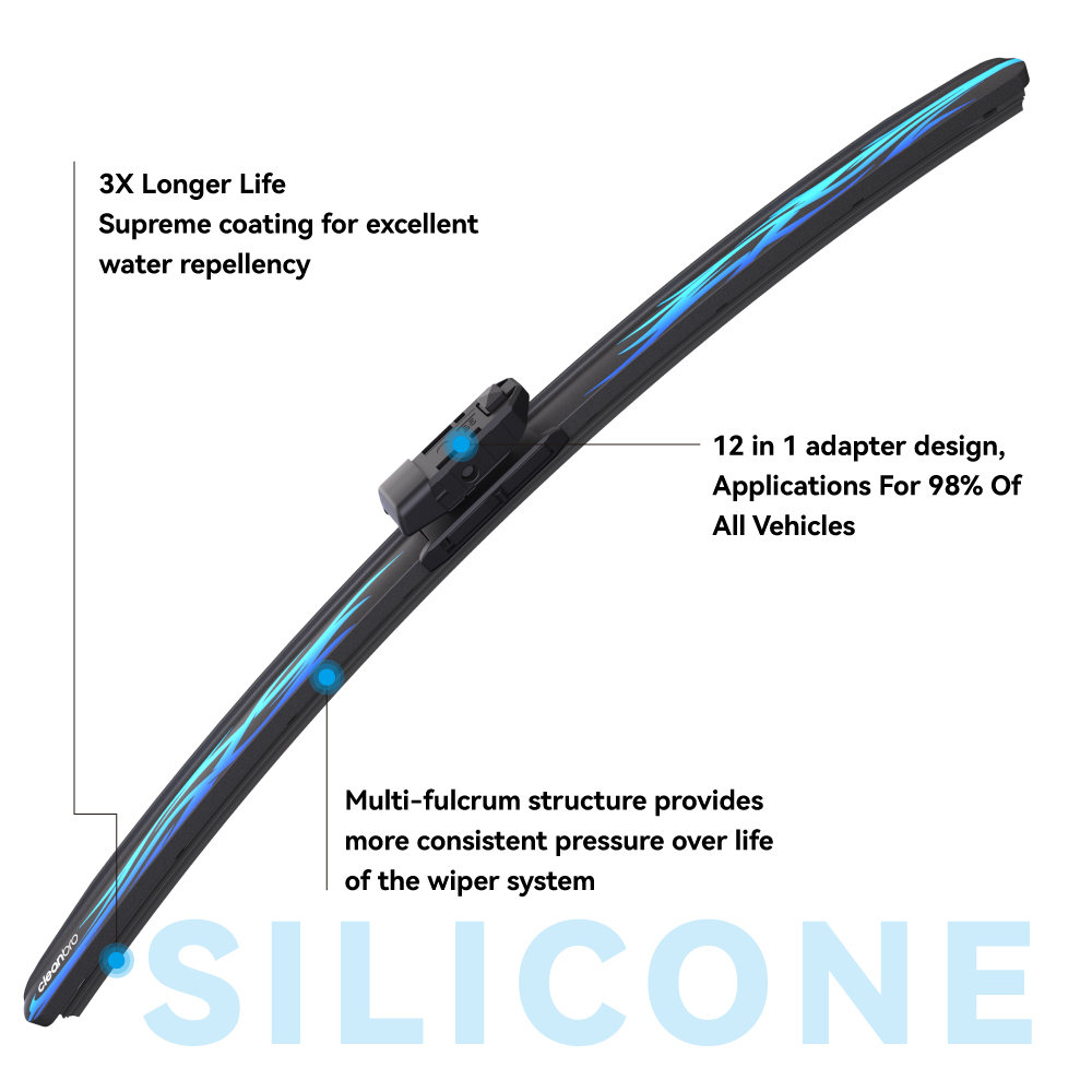 Its integrated spoiler reduces wind resistance and prevents wind-lift at high speeds, ensuring stable contact with the windshield and consistent clear-wipe results.