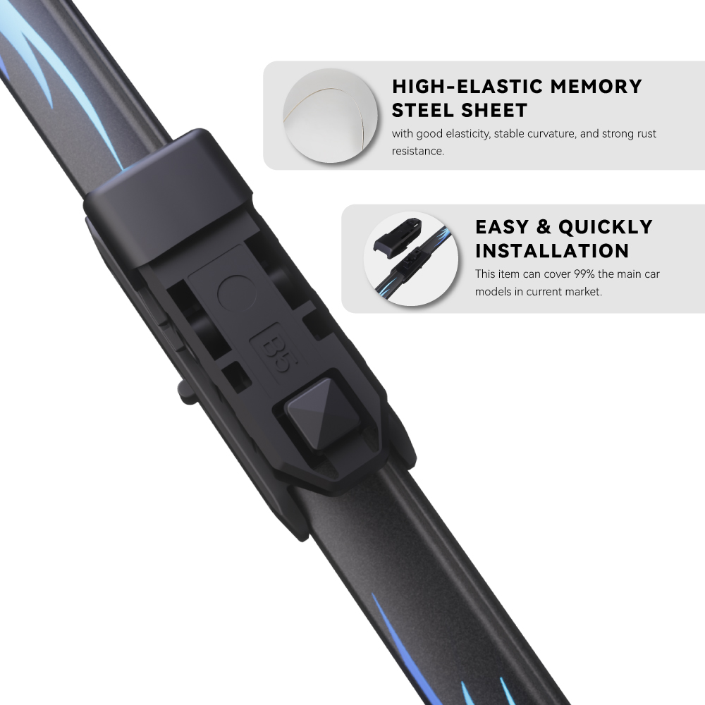 This wiper blade uses a special printing process that preserves all the performance of the original silicone wiper while adding a more stylish and fun appearance.