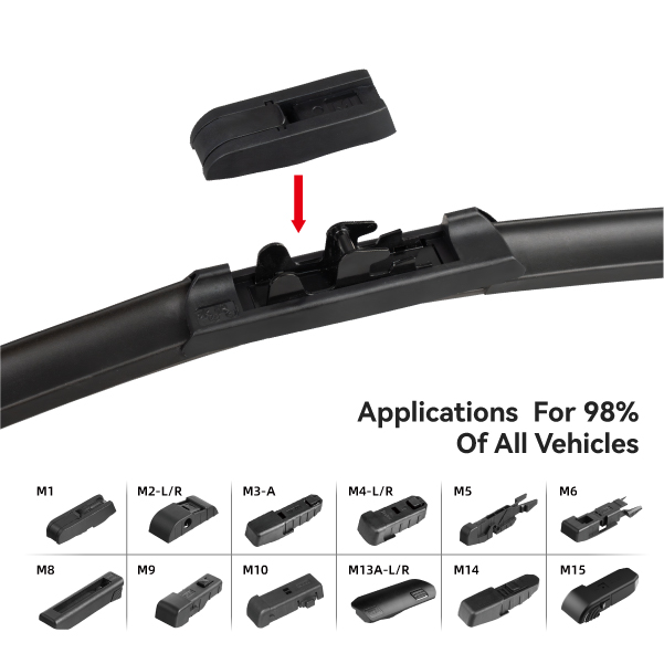This item can cover 98% the main car models in current market. Pre-assembled connector for quick and easy wiper replacement every time easy one-click install suitable for most Japanese and Korean cars.