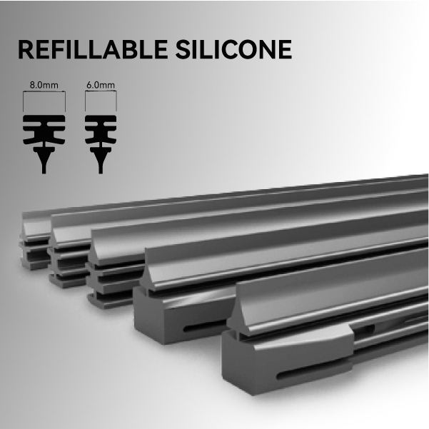 The Mita silicone rubber refill offers a service life up to three times longer than standard wiper rubber, providing excellent wiping clarity and durability.It also contains an integrated coating agent that is gradually released during use, forming a Water Repellent layer on the windshield for improved visibility.